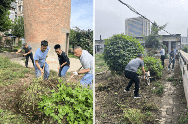 活動中,黨員職工紛紛拿起鋤頭、鐵鍬等工具,撿拾、清理三臺科研試驗田兩邊的垃圾、雜草,并對單身宿舍屋前雜草進(jìn)行了清理,經(jīng)過2個多小時的分工協(xié)作,環(huán)境衛(wèi)生煥然一新。
