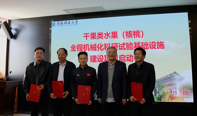 10月22日下午,干果類水果(核桃)全程機(jī)械化科研試驗(yàn)基礎(chǔ)設(shè)施建設(shè)項(xiàng)目啟動(dòng)會(huì)在陜西科技大學(xué)逸夫樓舉行。陜西省發(fā)展和改革委員會(huì)農(nóng)村經(jīng)濟(jì)處副處長(zhǎng)寇菲、陜西省農(nóng)業(yè)農(nóng)村廳農(nóng)業(yè)機(jī)械化管理處副處長(zhǎng)高鵬、陜西省教育廳科學(xué)技術(shù)處二級(jí)調(diào)研員邢曉靜、陜西科技大學(xué)校長(zhǎng)李志健出席了此次啟動(dòng)會(huì),會(huì)議由陜西科技大學(xué)副校長(zhǎng)陸趙情主持。